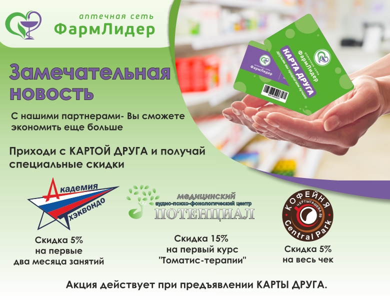 Также, ФармЛидер регулярно проводит акции и предлагает скидки на определенные товары, что делает покупки более выгодными для клиентов. ФармЛидер является надежным партнером в области здоровья и медицины, предлагая широкий выбор товаров, а также обеспечивая удобство и доступность для всех своих клиентов.